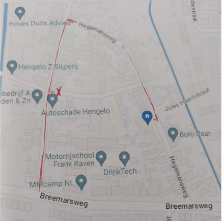 Als u met Google navigeert naar mijn trimsalon, dan stuurt Google u een pad/weg te vroeg. Dit kan, maar is niet wenselijk voor de mensen die daar wonen. U kunt de volgende straat inrijden en dan komt u ook uit op de Hegemansweg.