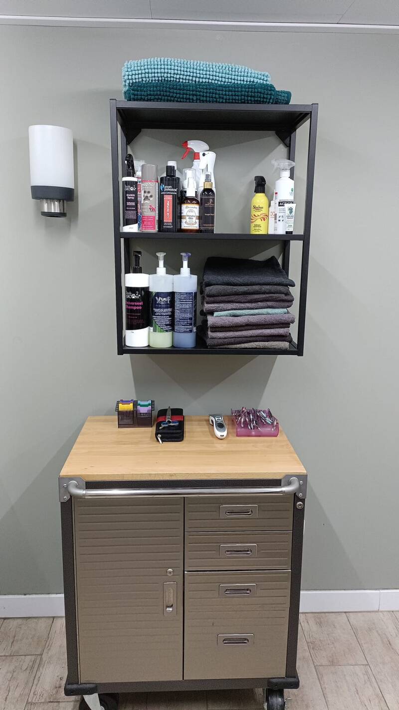 In 2022 is mijn schuur aan huis verbouwd tot deze prachtige hondentrimsalon. De salon is van alle gemakken voorzien en heeft een warme uitstraling. De salon is zo ingedeeld dat alle middelen voor het trimmen binnen handbereik is.